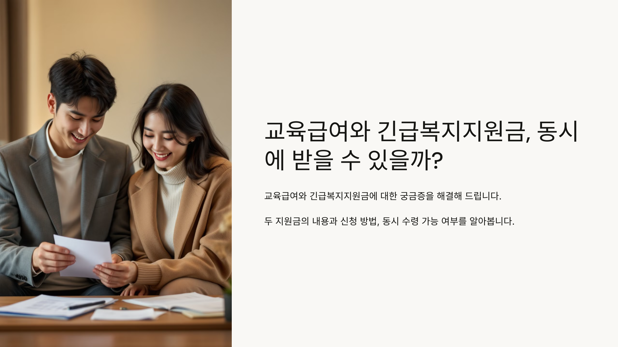 그렇다면 교육급여와 긴급복지지원금을 동시에 받을 수 있을까요? 결론부터 말씀드리면, 가능합니다. 다만, 각각의 지원 대상 기준과 신청 절차가 다르므로, 이를 충족해야 합니다.