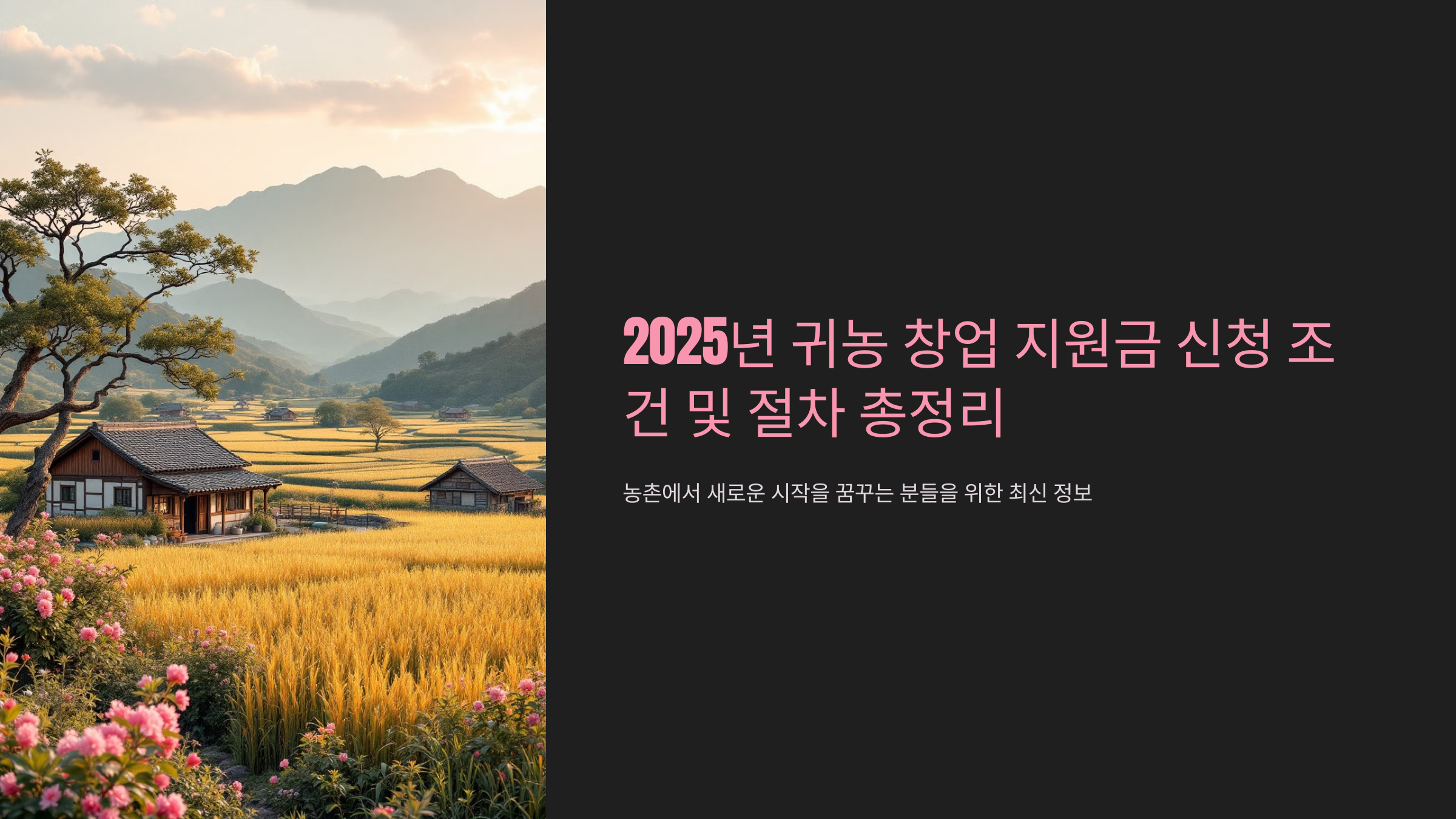 농촌에서 새로운 시작을 꿈꾸는 분들을 위해 2025년 최신 귀농 창업 지원금 신청 조건과 절차를 정리해 드리겠습니다. 🌾