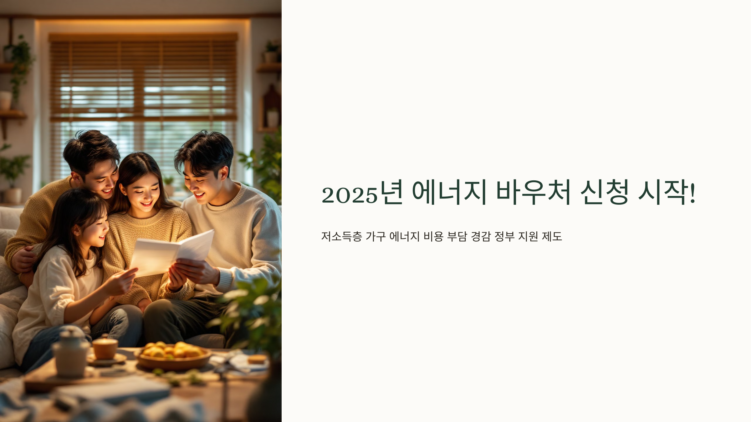에너지 바우처는 저소득층 가구의 에너지 비용 부담을 덜어주기 위한 정부 지원 제도입니다. 2025년에도 많은 분들이 이 혜택을 누릴 수 있도록 신청 조건과 절차를 상세히 안내해 드리겠습니다.